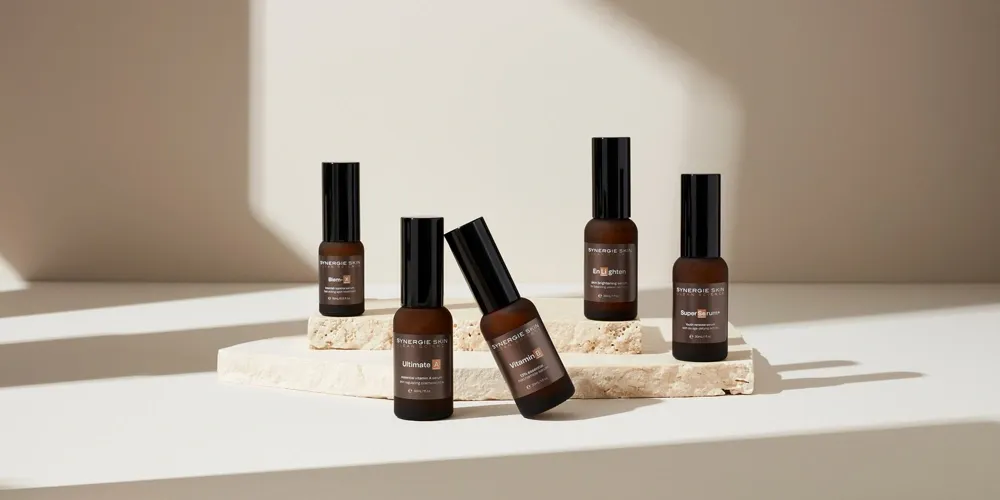 - Fine line reduction: Vitamin A (Synergie Skin Ultimate A), Vitamin C (Synergie Skin Effica C or Pure-C Crystals), collagen stimulating peptides (present in Synergie Skin ImprovEyes Day)