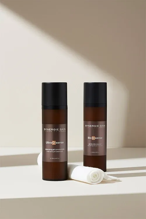 Water based cleansers containing surfactants attract oil and impurities from the skin so they can be easily removed from the skin surface. This type of cleanser includes foaming gels and non-foaming lotions. Cleansing gel concentrates, such as Synergie Skin's UltraCleanse, are ideal for virtually every skin type including normal, combination and acne prone skin. Other non-foaming lotion cleansers, such as Synergie Skin's BioCleanse, are called oil-in-water emulsions. These contain a lower level of surfactant and are recommended for dry or mature skin. BioCleanse has been specifically created with a mild, low foaming milk formula that is gentle on fragile and dry skin. The optimal pH for any water based cleanser is around 5.6 (slightly acidic). This is the natural pH of skin so irritation is minimised and our normal acid mantle is maintained. A good facial cleanser must be mild and not disrupt the natural barrier function of the skin.
